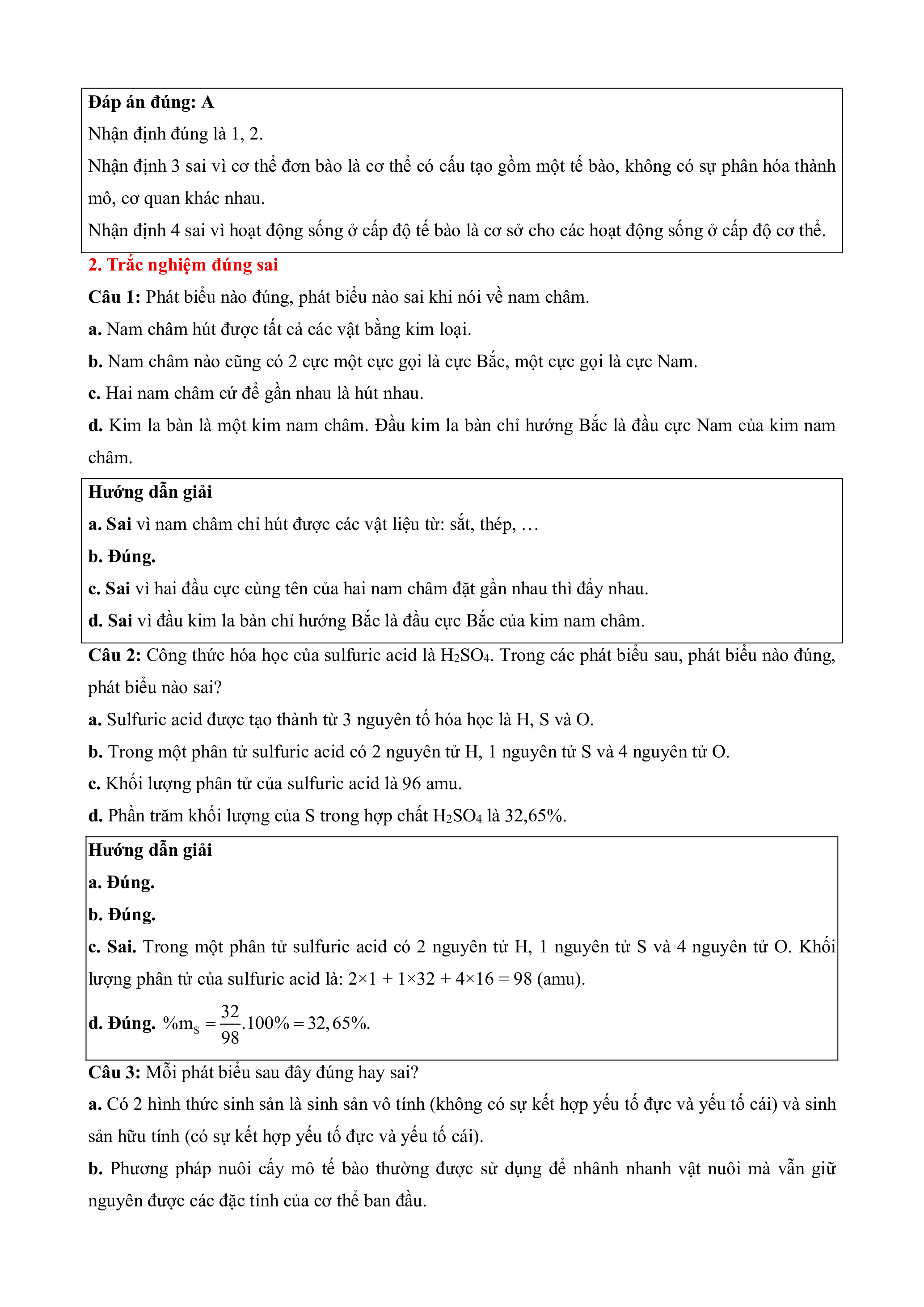 d. Phần trăm khối lượng của S trong hợp chất H2SO4 là 32,65%. Hướng dẫn giải a. Đúng. b. Đúng.