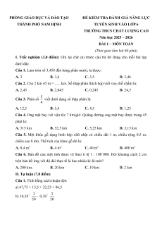 Bộ 23 Đề thi vào lớp 6 Toán Nam Định các năm