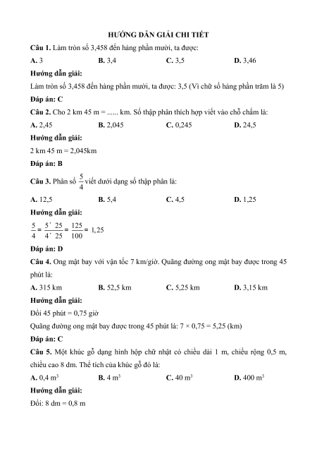 Câu 1. Làm tròn số 3,458 đến hàng phần mười, ta được: A. 3 B. 3,4 C. 3,5 D. 3,46 Hướng dẫn giải: