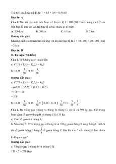Câu 6. Bản đồ của một tỉnh được vẽ theo tỉ lệ 1 : 100 000. Hỏi khoảng cách 2 cm