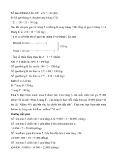đó số gạo ở thùng B bằng 2 số gạo ở thùng C. Hỏi lúc đầu ở mỗi thủng có bao nhiêu 3 ki-lô-gam gạo? Hướng dẫn giải: