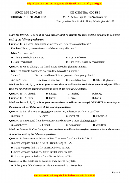 MÔN: Anh – Lớp 12 (Chương trình cũ)