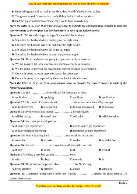 A. If the guests didn’t have an accident, they wouldn’t arrive so late. Trang 1