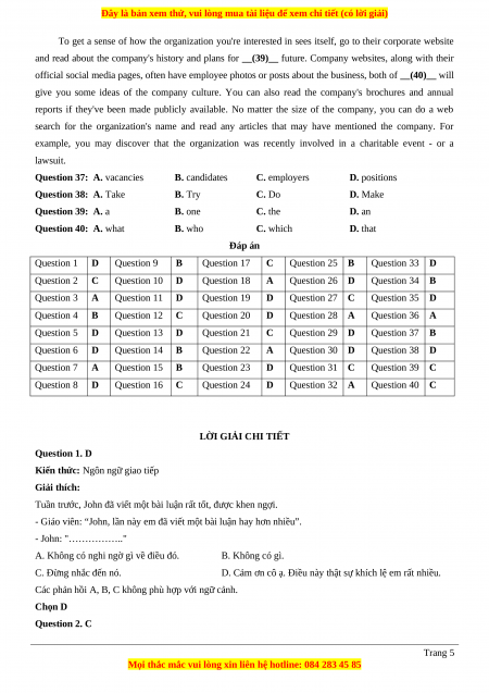 Question 37: A. vacancies B. candidates C. employers D. positions