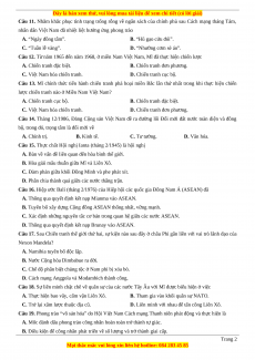 Câu 10. Trong cuộc chiến tranh xâm lược Đông Dương, từ năm 1949, chính phủ Pháp bắt đầu nhận viện trợ của nước nào? A. Nhật Bản. B. Anh. C. Mĩ. D. Hà Lan. Trang 1