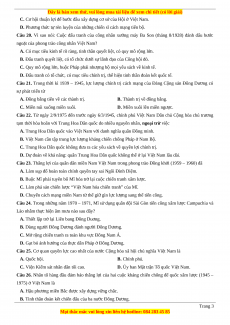 Câu 29. Nội dung nào dưới đây không phản ánh đúng nguyên nhân dẫn đến sự thất bại của các cuộc khởi