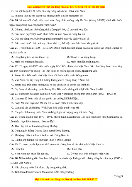 Câu 21. Trong thời kì 1939 – 1945, lực lượng chính trị cách mạng của Đảng Cộng sản Đông Dương có sự phát triển từ