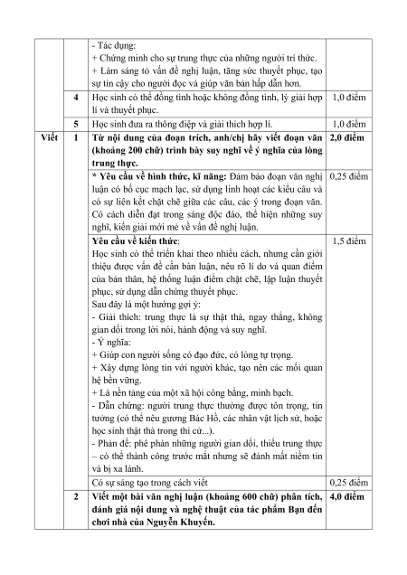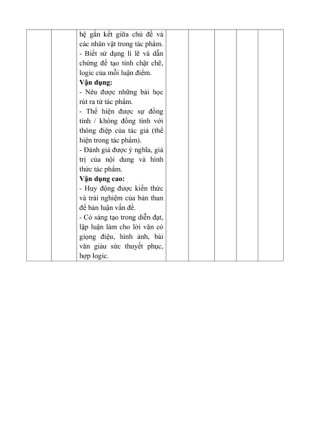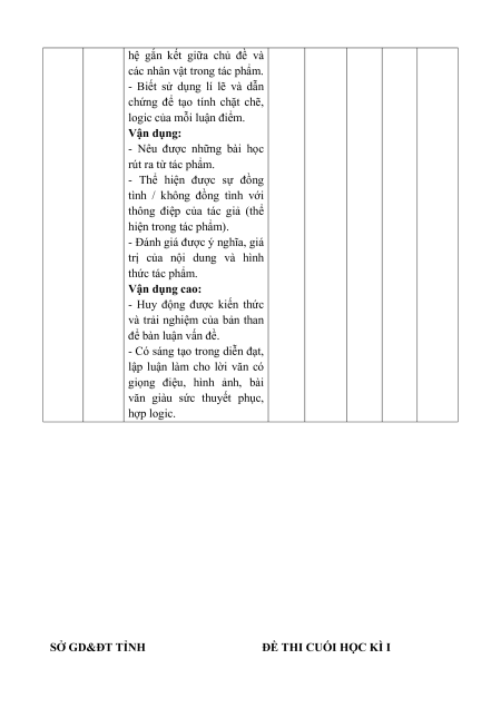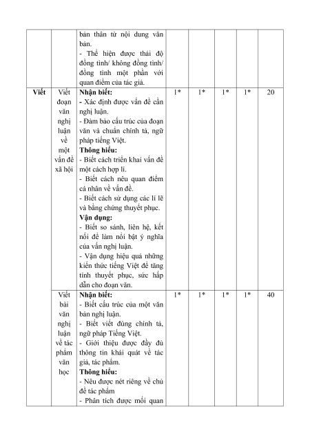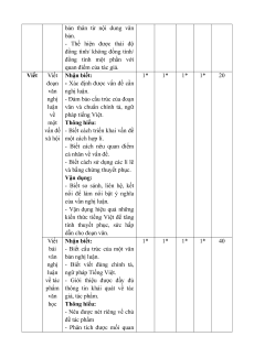 Nội dung/ đơn vị kĩ năng Tổng % Vận điểm Biết Hiểu Vận dụng dụng cao TL TL TL TL Đọc hiểu Văn bản nghị luận 2 2 1 40