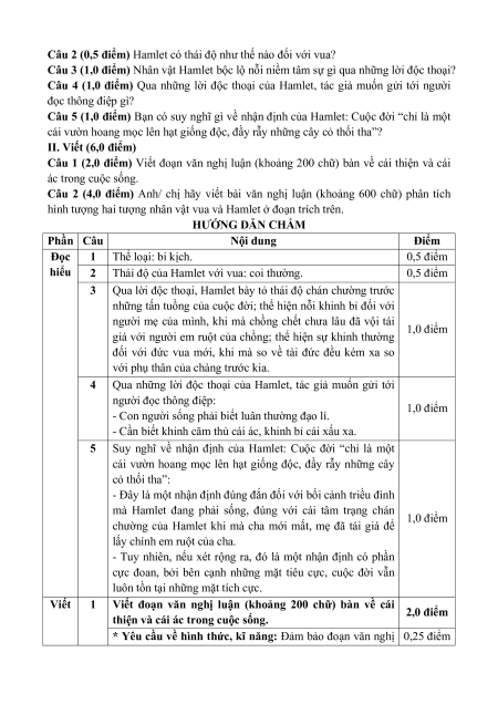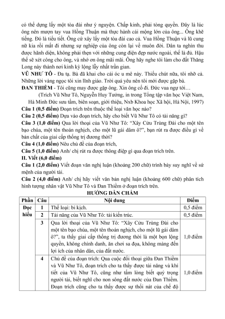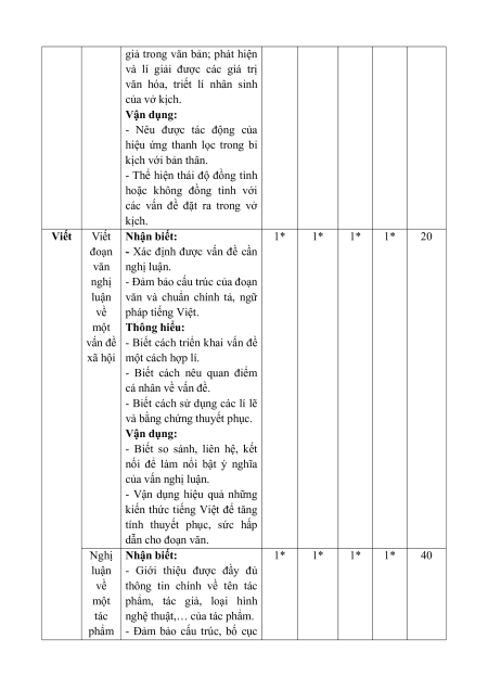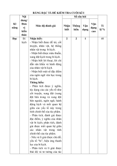 Nội dung/ đơn vị kĩ năng Tổng % Vận điểm Biết Hiểu Vận dụng dụng cao TL TL TL TL Đọc hiểu Bi kịch 2 2 1 40