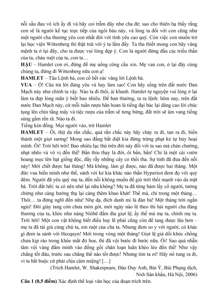 của ngôn ngữ văn học trong bi kịch. Thông hiểu: