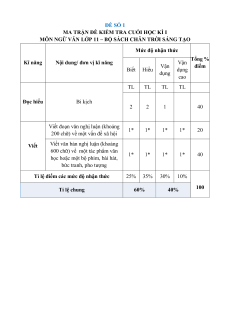 Bộ 25 đề thi cuối kì 1 Ngữ văn 11 Chân trời sáng tạo Cấu trúc mới
