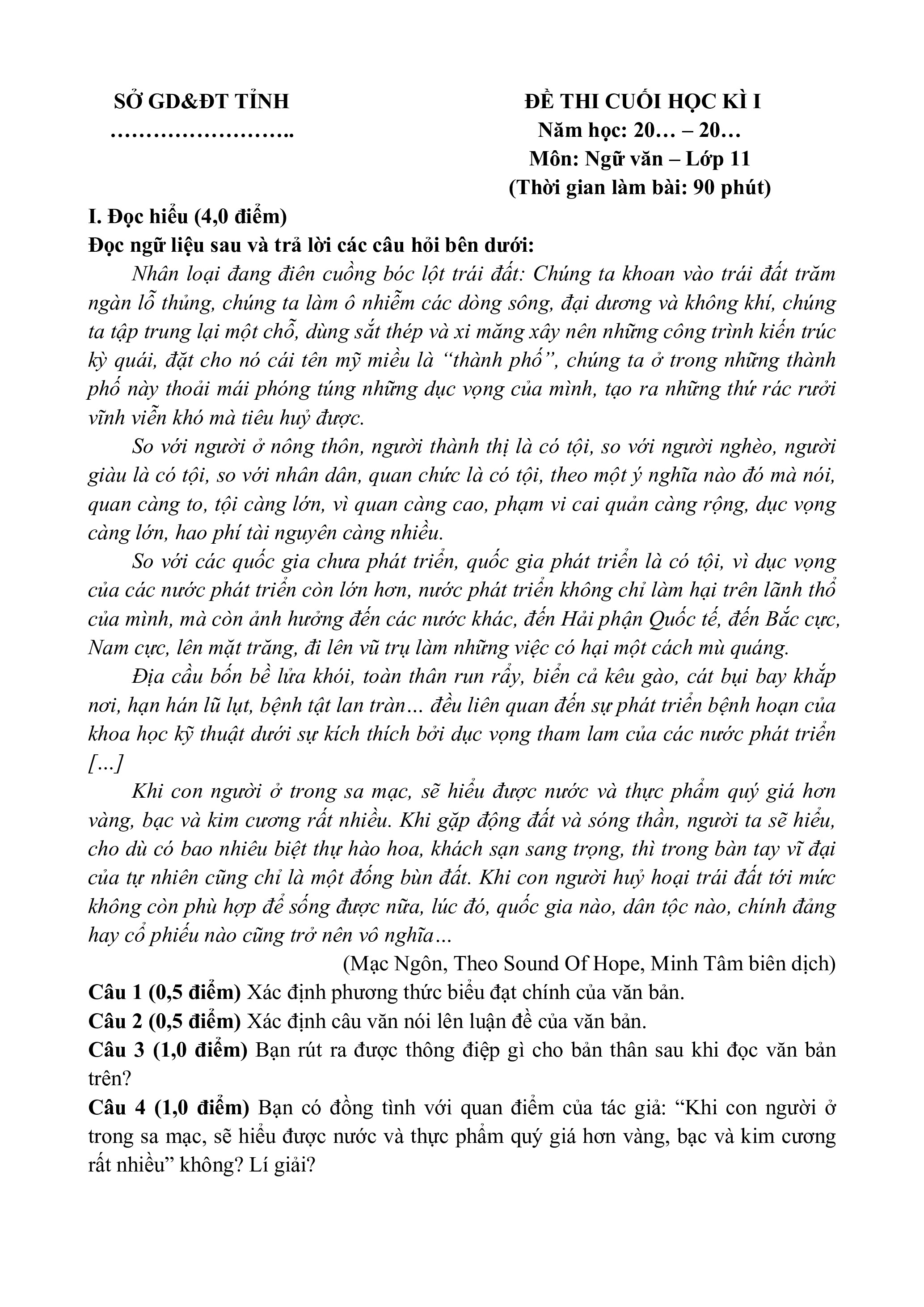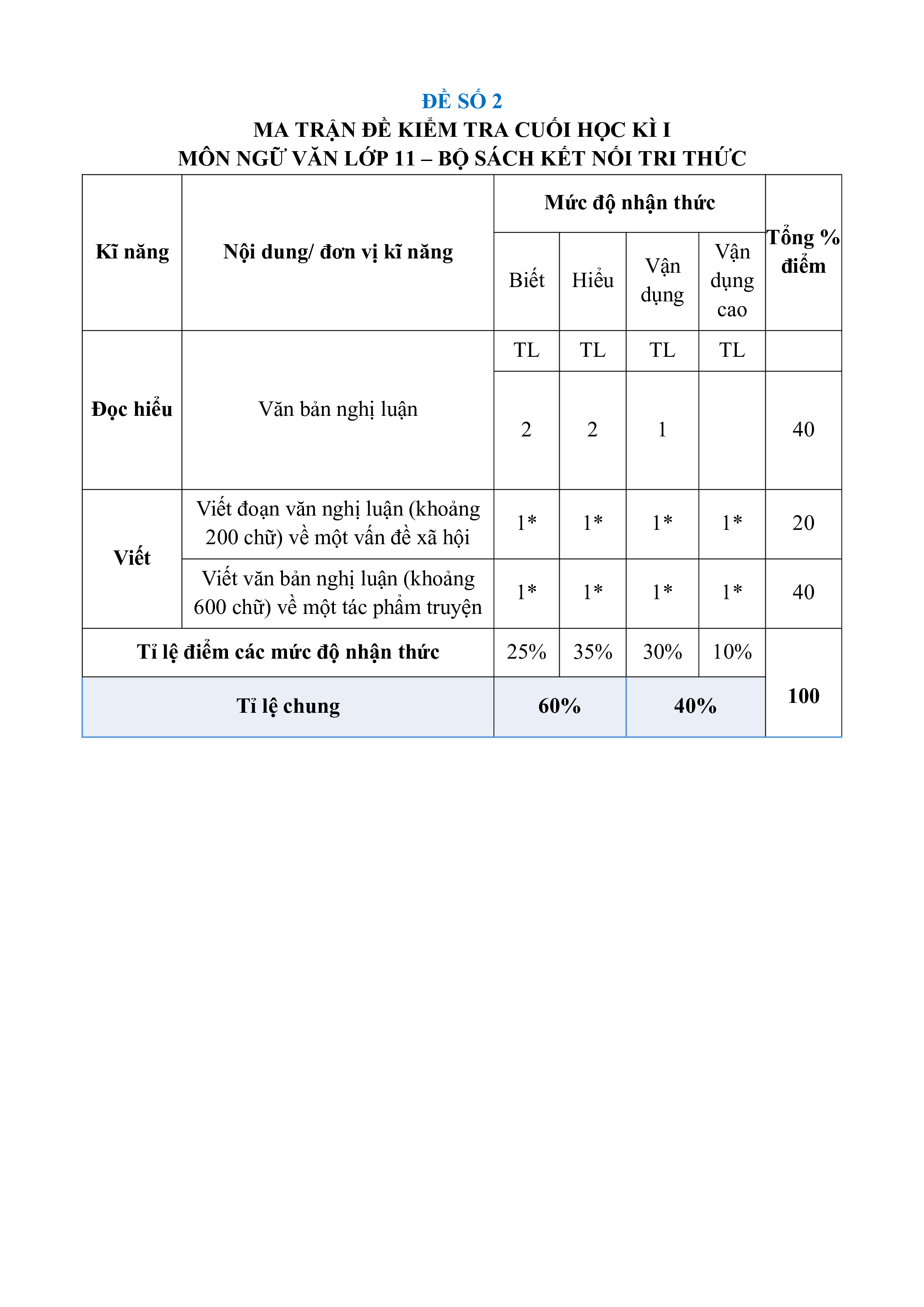 - Tailieugiaovien.com.vn giới thiệu bộ 25 đề cuối kì 1 gồm đầy đủ ma trận và lời giải chi tiết môn Ngữ văn 11 Kết nối tri thức Cấu trúc mới nhằm giúp Giáo viên có thêm tài liệu tham khảo ra đề thi Ngữ văn lớp 11.