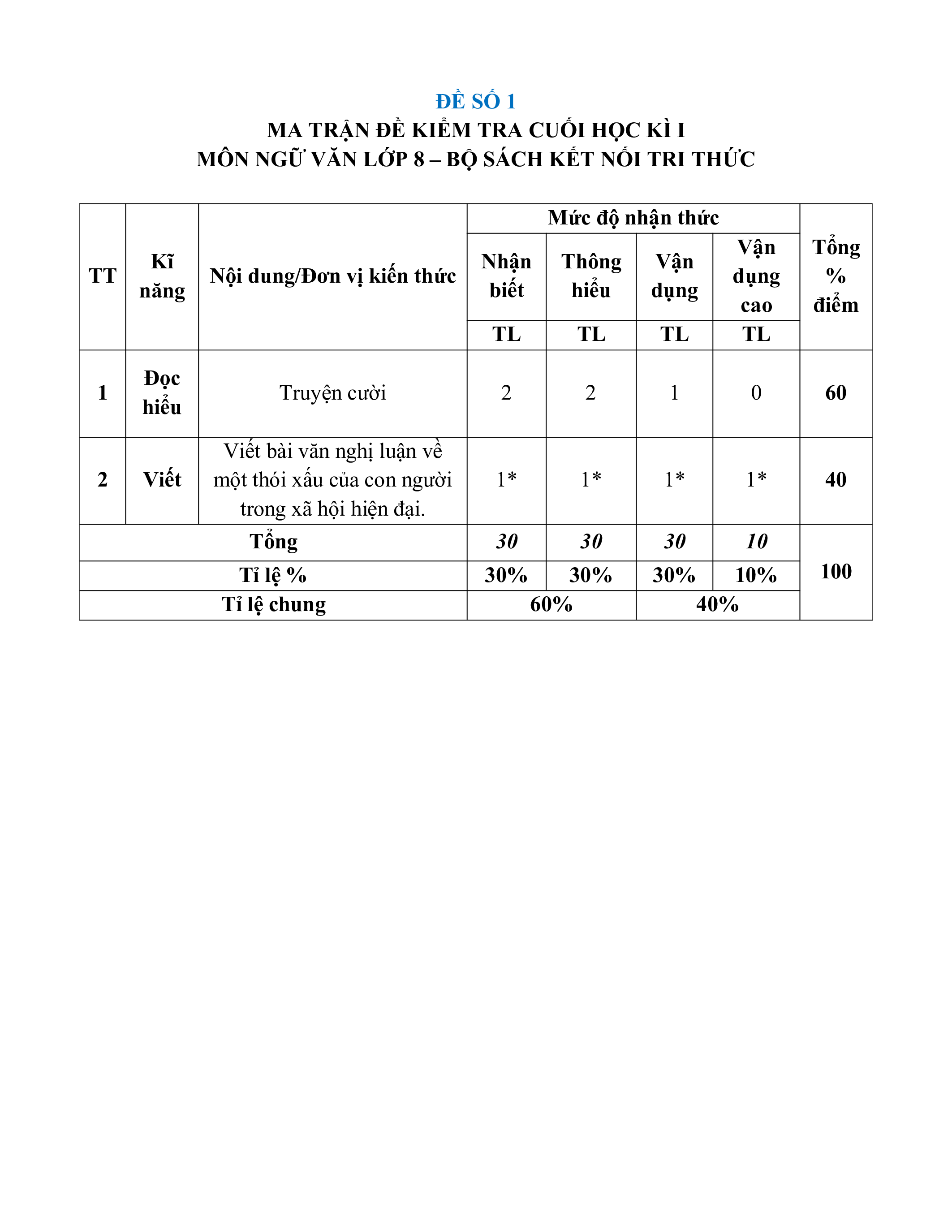 Bộ 25 đề thi cuối kì 1 Ngữ văn 8 Kết nối tri thức Cấu trúc mới