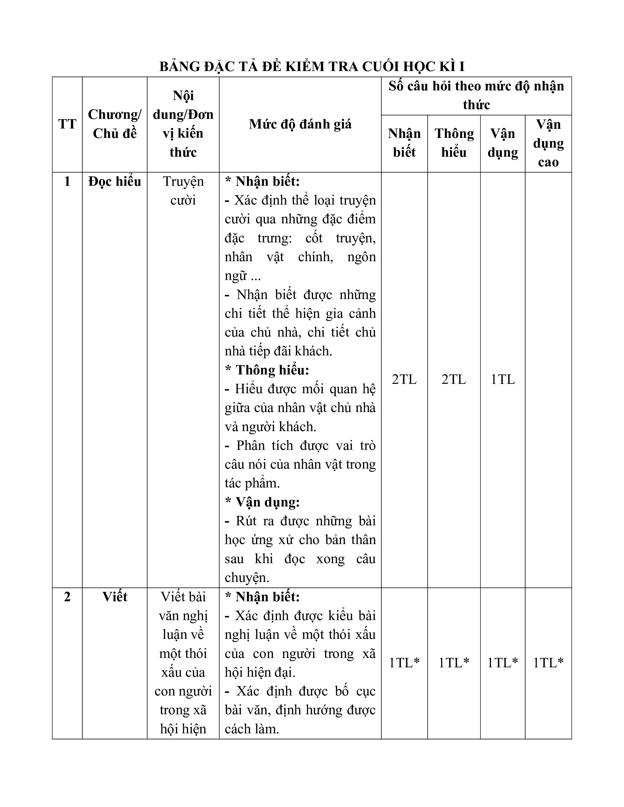 năng Nội dung/Đơn vi kiên thưc dung % biêt hiểu dung cao điểm TL TL TL TL 1 Đọc hiểu Truyện cười 2 2 1 0 60