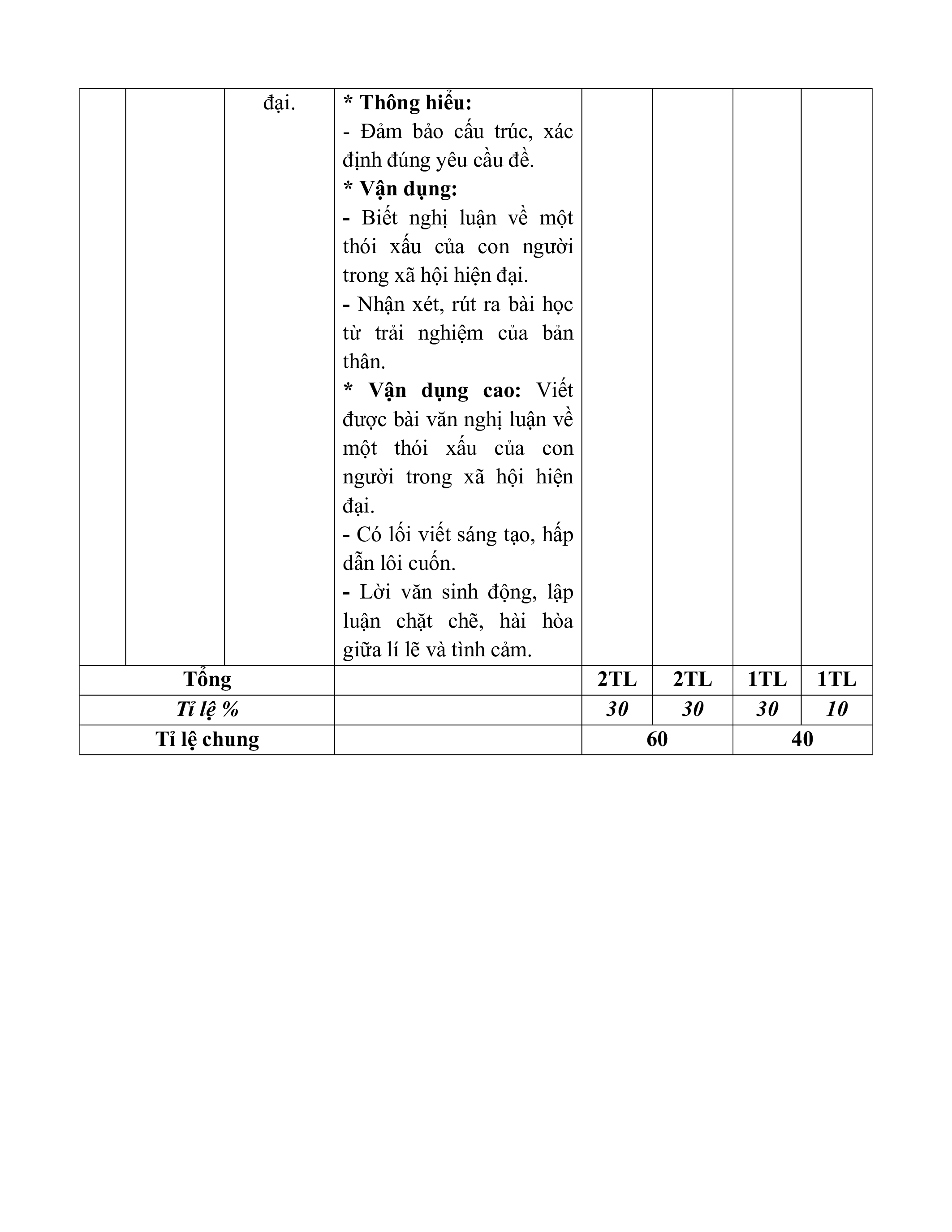 giữa lí lẽ và tình cảm. Tổng 2TL 2TL 1TL 1TL Ti lê % 30 30 30 10 Ti lê chung 60 40