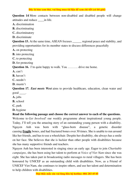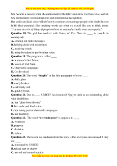 Question 21. Due to____, UNICEF has honoured Nguyen Anh as an outstanding child with disabilities.