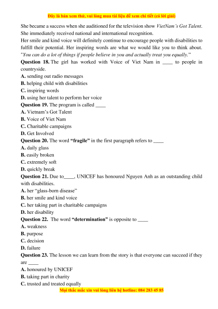 Question 23. The lesson we can learn from the story is that everyone can succeed if they are ____ A. honoured by UNICEF