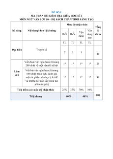 MA TRẬN ĐỀ KIỂM TRA GIỮA HỌC KÌ I