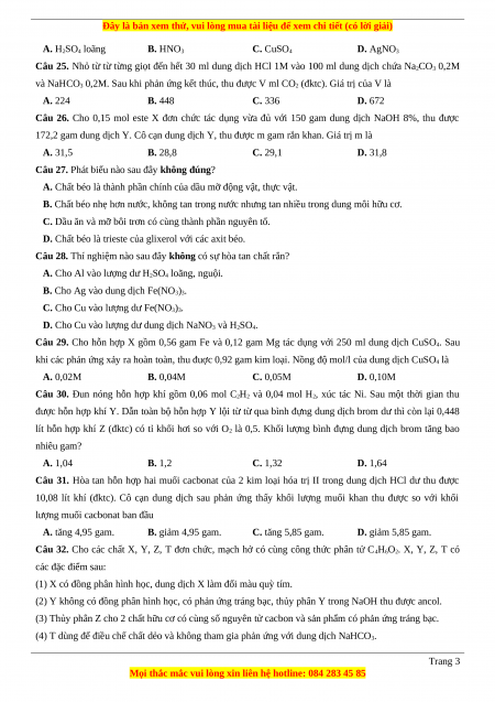 Câu 24. Fe phản ứng với dung dịch nào sau đây tạo khí H2 ? Trang 2