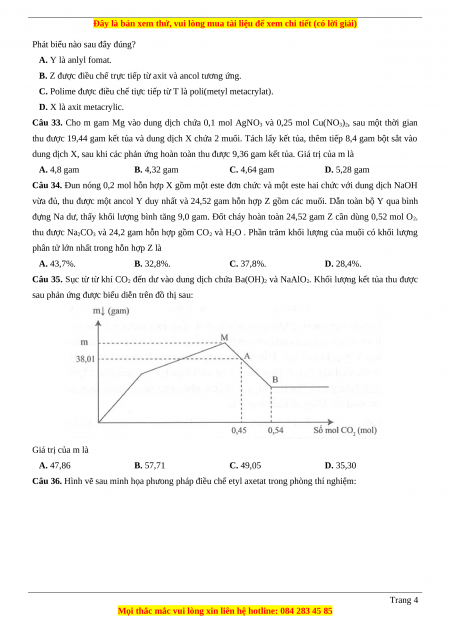 Câu 32. Cho các chất X, Y, Z, T đơn chức, mạch hở có cùng công thức phân tử C4H6O2. X, Y, Z, T có các đặc điểm sau: