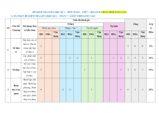 Chủ đề/ Nội dung/ đơn Tự luận TT Nhiều lựa chọn “Đúng – Sai” Trả lời ngắn % Chương vị kiến thức Vận Vận Vận Vận Vận điểm Biết Hiểu Biết Hiểu Biết Hiểu Biết Hiểu Biết Hiểu dụng dụng dụng dụng dụng Tập hợp các số hữu tỉ. Thứ tự 2 2 0 0 5% Số hữu trong tập hợp 1 tỉ số hữu tỉ Các phép tính 2 2 2 1 1 2 2 4 4 35% với số hữu tỉ Số vô tỉ. Căn bậc hai số học. 2 Số thực 2 1 1 3 0 1 15% Tập hợp ℝ các số thực. Hình hộp chữ nhật. Hình lập Hình phương. Hình 3 học trực 4 2 2 1 1 6 3 1 35% lăng trụ đứng quan tam giác. Hình lăng trụ đứng tứ giác. Góc.