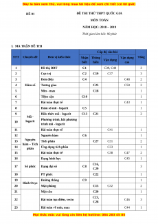 Phương trình, bất phương 10 logarit trình mũ - logarit 11 Bài toán thực tế C41 1 12 Nguyên hàm C6 1 Nguyên 13 Tích phân C27 C31 2 hàm – Tích 14 phân