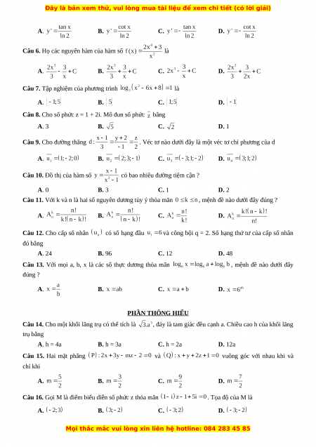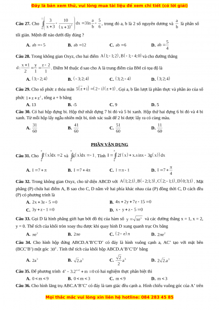 Đây là bản xem thử, vui lòng mua tài liệu để xem chi tiết (có lời giải)