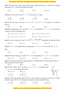 Câu 17. Cho hình chóp S.ABC có đáy ABC là tam giác vuông cân tại B, AB = a, cạnh bên SA vuông góc