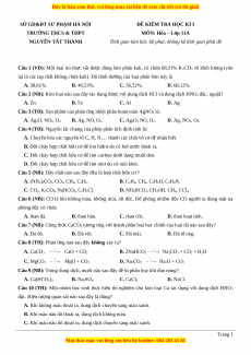 + Đề thi học kì 1 Hóa học năm 2023 trường THPT Trần Hưng Đạo - Hà Nội;