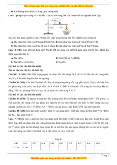 Câu 12 (VD): Cho 300 ml dung dịch NaOH 1M tác dụng với 200 ml dung dịch H3PO4 1M. Muối thu được sau phản ứng là A. NaH2PO4. B. NaH2PO4 và Na2HPO4. C. Na2HPO4 và Na3PO4. D. Na3PO4.