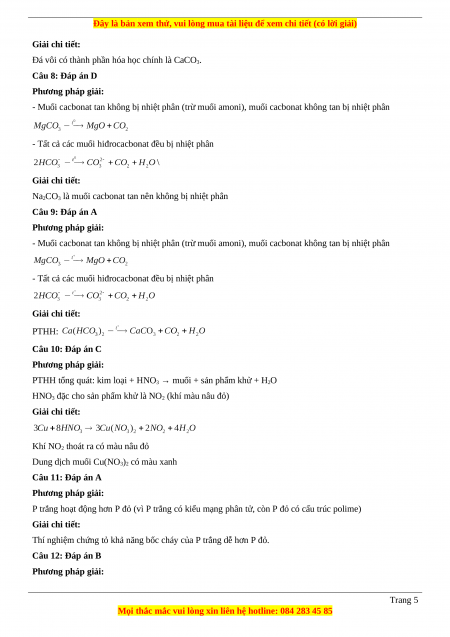 Câu 9 (NB): Trong dung dịch, muối nào sau đây dễ bị phân hủy khi đun nóng? A. Ca(HCO3)2. B. Na2SO4. C. CaCl2. D. NaCl.