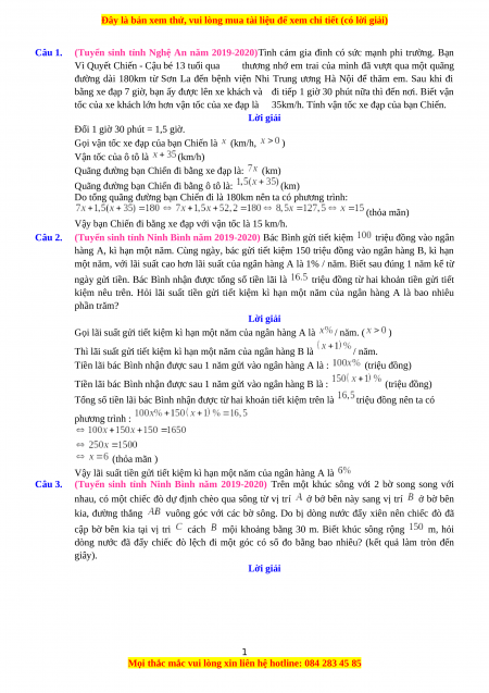 (Tuyển sinh tỉnh Ninh Bình năm 2019-2020) Bác Bình gửi tiết kiệm triệu đồng vào ngân