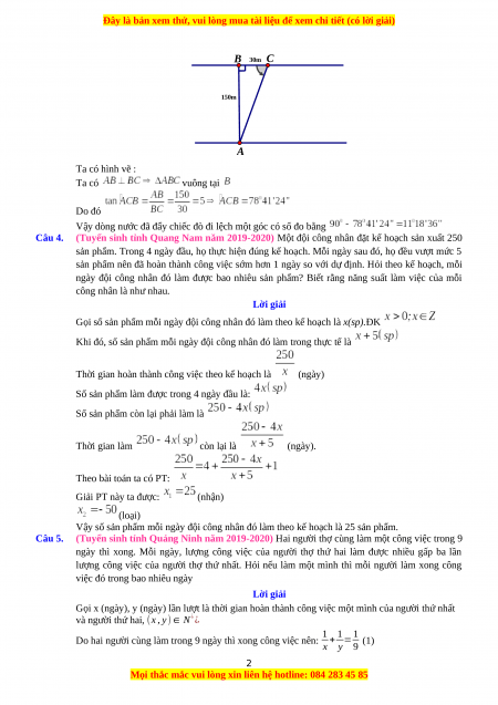 Câu 4. (Tuyển sinh tỉnh Quang Nam năm 2019-2020) Một đội công nhân đặt kế hoạch sản xuất 250