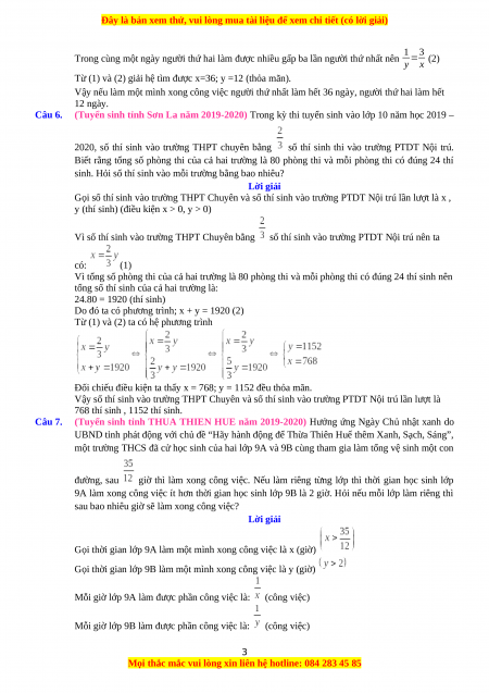 Câu 6. (Tuyển sinh tỉnh Sơn La năm 2019-2020) Trong kỳ thi tuyển sinh vào lớp 10 năm học 2019 –