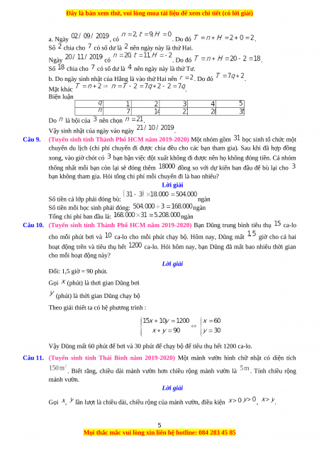 Câu 9. (Tuyển sinh tỉnh Thành Phố HCM năm 2019-2020) Một nhóm gồm học sinh tổ chức một