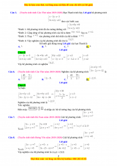 Câu 12. (Tuyển sinh tỉnh Thái Bình năm 2019-2020) Giải hệ phương trình (không sử dụng máy tính cầm tay). Lời giải Có . Vậy nghiệm của hệ là