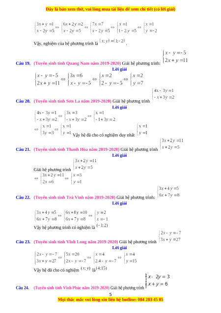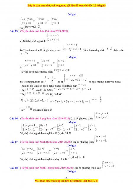 Câu 18. (Tuyển sinh tỉnh Ninh Thuận năm 2019-2020) Giải hệ phương trình sau: Lời giải 4