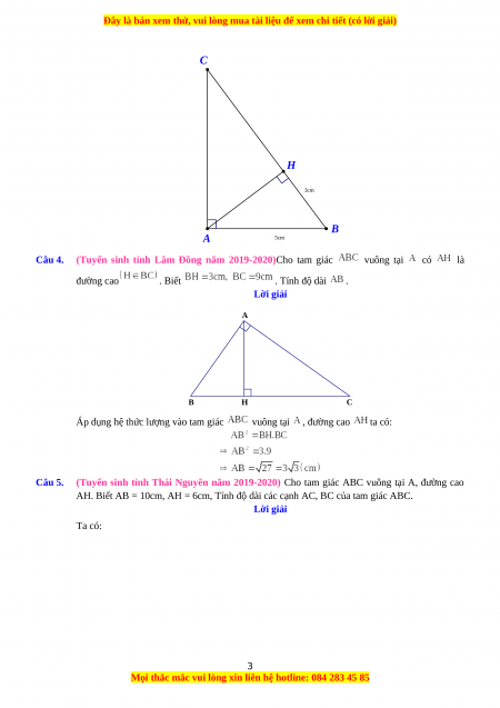 Áp dụng hệ thức lượng vào tam giác vuông tại , đường cao ta có: Câu 5.