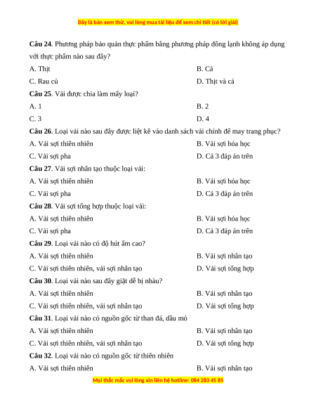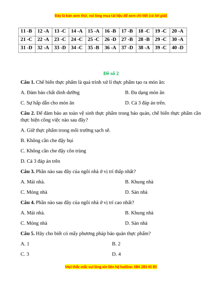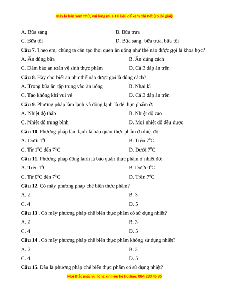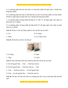 Câu 12. Có mấy phương pháp chế biến thực phẩm? A. 2 B. 3 C. 4 D. 5