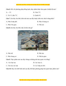 Câu 11. Phương pháp đông lạnh là bảo quản thực phẩm ở nhiệt độ: A. Trên 10C B. Dưới 00C C. Từ 00C đến 70C D. Trên 70C