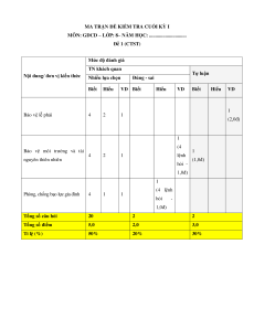 MA TRẬN ĐỀ KIỂM TRA CUỐI KỲ I
