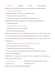 Câu 14. Trên đường đi học về Ngọc và Khánh nhìn thấy một cô đem rác ra bờ hồ vứt. Ngọc muốn