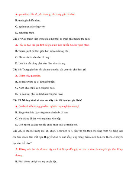 Câu 16: Gia đình là nơi các thành viên trong gia đình phải: