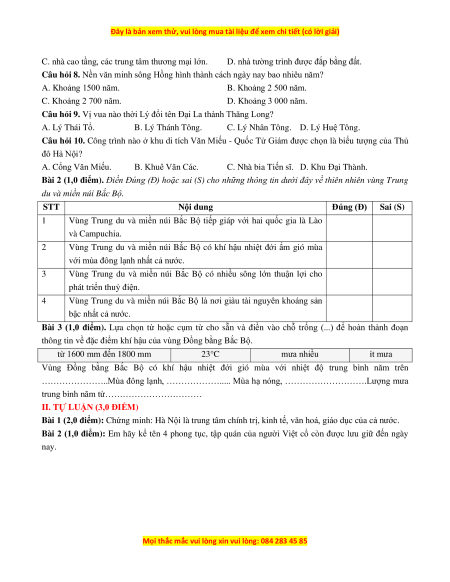 Câu hỏi 8. Nền văn minh sông Hồng hình thành cách ngày nay bao nhiêu năm? A. Khoảng 1500 năm. B. Khoảng 2 500 năm. C. Khoảng 2 700 năm. D. Khoảng 3 000 năm.
