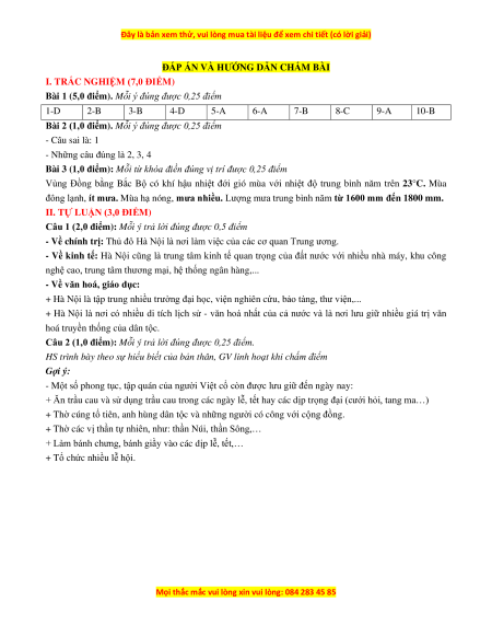 Bài 1 (2,0 điểm): Chứng minh: Hà Nội là trung tâm chính trị, kinh tế, văn hoá, giáo dục của cả nước.