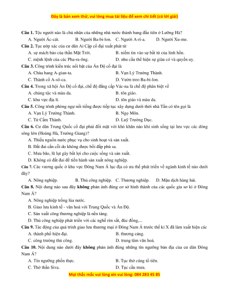 Câu 4. Trong xã hội Ấn Độ cổ đại, chế độ đẳng cấp Vác-na là chế độ phân biệt về A. chủng tộc và màu da. B. tôn giáo. C. khu vực địa lí. D. tôn giáo và màu da.