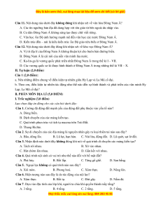 Câu 12. Nội dung nào dưới đây đúng khi nhận xét về khu vực Đông Nam Á?