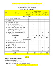 Mức độ đánh giá STT Nội dung Nhận biết Thông hiểu Vận dụng VD cao TN TL TN TL TN TL TN TL Phân môn Lịch sử 1