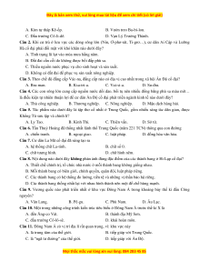 Câu 9. Vương quốc nào phát triển nhất ở khu vực Đông Nam Á trong khoảng bảy thế kỉ đầu Công nguyên? A. Văn Lang. B. Pê-gu. C. Phù Nam. D. Âu Lạc.