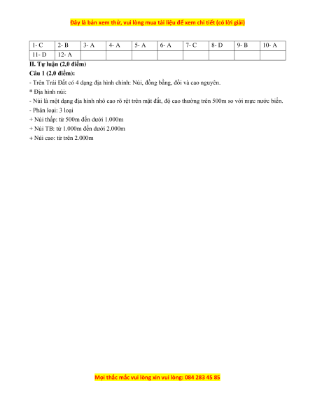 Câu 1 (2,0 điểm): Kể tên các dạng địa hình chính trên Trái Đất. Trình bày sự hiểu biết của em về dạng địa hình núi.